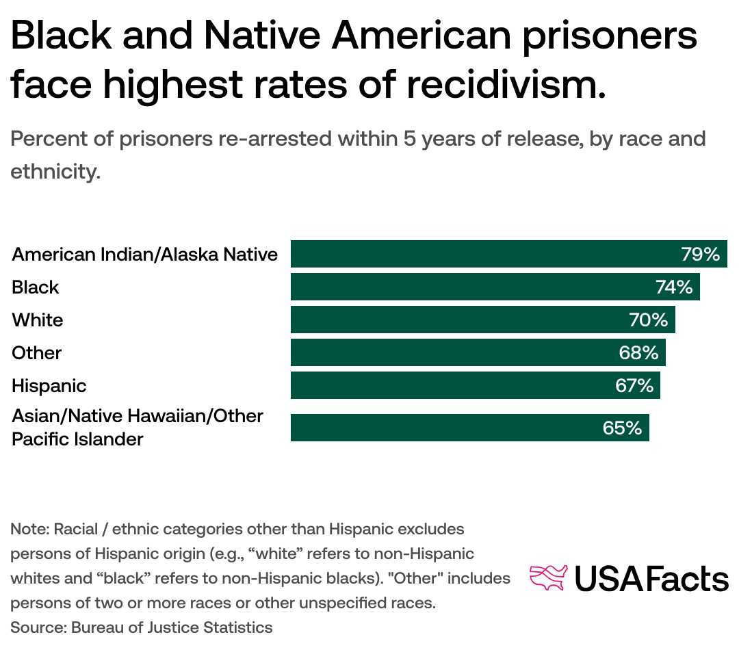 Black and Native American prisoners face highest rates of recidivism.