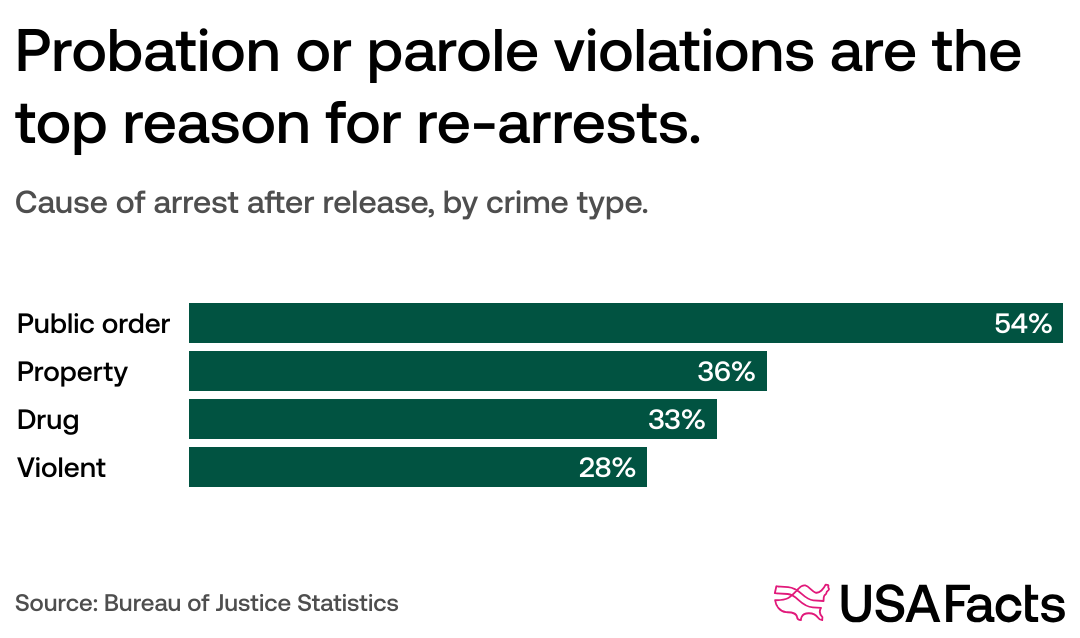 Probation or parole violations are the top reason for re-arrests.